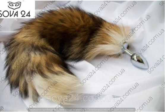 Металева анальна пробка з хутряним рудим хвостом і анальним лубрикантом